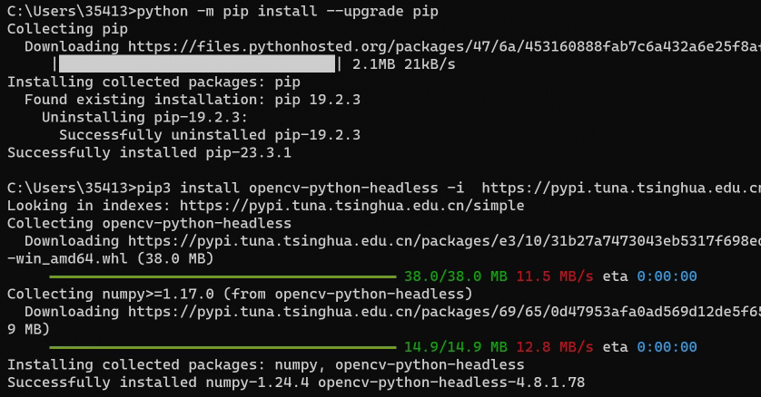 关联内容: 【汇总】Python模块安装相关报错(pip install) https://wiki.bafangwy.com/doc/251/ 【汇总】codereg.py-ddddocr启动报错 https://wiki.bafangwy.com/doc/366/ # 前提条件 easyocr需要用python 3运行,先检查系统环境变量,path里面里面有没有添加python 3根目录和Scripts目录。  并且 ``python --version``的结果是python 3版本 B23-Windows多个Python版本如何切换【必看】 https://wiki.bafangwy.com/doc/697/ >i 注意:不要在虚拟机的Windows里面安装环境、跑代码和工具这些,问题太多了,直接用物理机最省事。  # easyocr模块安装成功的标志 用everything搜索,可以看到``easyocr.exe``。 如果没有这个文件,肯定是没有安装成功,需要用pip install 安装。  # 错误1 1、运行easy.py代码,提示: ``` AttributeError: module 'easyocr' has no attribute 'Reader' ``` 2、 运行 ``pip install easyocr``,提示: ``` Failed building wheel for opencv-python-headless ``` ## 原因 根本原因是pip程序版本问题,间接导致了安装的模块有问题 (其他原因还包括:python环境问题(比如多版本共存)、操作系统环境问题等等) ## 解决办法 ``python -m pip install --upgrade pip``  升级以后再安装easyocr ``pip install easyocr -i https://pypi.tuna.tsinghua.edu.cn/simple`` # 错误2:no module named bidi.algorithm 解决办法: `pip install python-bidi==0.4.2` 关联问题: https://www.mashibing.com/question/detail/103584 # 错误3:初次运行下载检测模块慢的问题: Neither CUDA nor MPS are available - defaulting to CPU. Note: This module is much faster with a GPU. Downloading detection model, please wait. This may take several minutes depending upon your network connection. Progress: |███-----------------------------------------------| 6.7% Complete 解决办法参考: https://blog.csdn.net/qq13933506749/article/details/122481211 # 错误4  python 3.9.4不支持,3.8.0可以运行