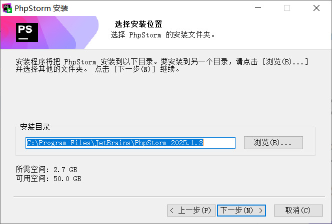 这里用到一个通用激活脚本,理论上支持2020-2025 Jetbrains全系列。 JetBrains全家桶包括:**IntelliJ IDEA、PhpStorm、PyCharm、CLion、WebStorm、Rider、GoLand、Resharper**。 激活流程是完全一样的。 # 0、卸载旧版本 如果安装了phpstorm的旧版本,务必用工具卸载掉: https://msb-netdisk.mashibing.com/share/a119458f65c54f47b62389a3b66fd84e # 1、下载phpstorm 下载phpstorm https://www.jetbrains.com/phpstorm/download/?section=windows  # 2、安装phpstorm 这里以`PhpStorm-2025.1.3.exe`为例。 下一步:  下一步:  下一步:  下一步:  完成:  # 3、激活 B30-JetBrains全家桶通用激活流程 https://wiki.bafangwy.com/doc/871/