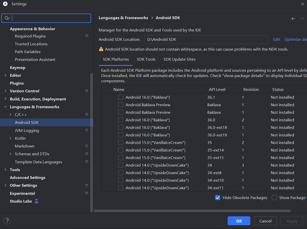 ### Java安装 Oracle 官网: https://www.oracle.com/java/technologies/downloads 选择Java 21 安装  安装正常下一步然后正常安装完毕即可 安装完毕过后打开cmd 测试命令 如下所示就是安装成功了 (配置环境变量) ```cmd java --version ```  ### 编译器选择 Android Studio Eclipse (**停止更新 不建议使用**) #### Android Studio 安装 安装包下载地址: https://developer.android.google.cn/?hl=zh-cn 正常下载,打开安装包 注意这里要选择一个稍微大一点的磁盘安装  安装完成正常启动  然后创建一个新的空项目  按照这样  在File -> Settings 找到 这个页面 设置Android sdk  选择 edit 选择目录安装sdk   这里选择同意  下载一些对应的虚拟机 这一步不在这里下载也可以 后续直接用模拟器也行   这个包安装的很慢 要卡很久 可以考虑更换源(不建议) 能科学上网就不要更换,毕竟设置gradle和设置依赖很麻烦,而且用镜像没准会出现拉不到最新的可能 尽量科学上网解决这个问题  等所有一切都完成了(大概一个小时左右,没有科学上网的话) 右击运行这个项目  尝试生成APK  下载速度慢有问题的可以在这里配置代理 File > Settings -> http proxy  ### 雷电模拟器 正常安装模拟器即可 选择雷电模拟器,逍遥模拟器,夜神模拟器都可以尽量不要选择Mumu模拟器 安装完成以后 安装两个虚拟机(后续安装也可以)  ### 环境变量配置 打开环境变量 配置 把Android sdk目录的工具配置到`path`当中  ### 反编译工具安装 #### jadx github地址 : https://github.com/skylot/jadx/releases/tag/v1.5.3 直接下载就好 #### Android Killer Github地址 : https://github.com/Lumirelle/android-killer 下载解压就好了  #### MT管理器 手机APP 直接安装到模拟器即可 官网地址 : https://mt2.cn/ ### 抓包工具 Burpsuite 正常安装一个即可